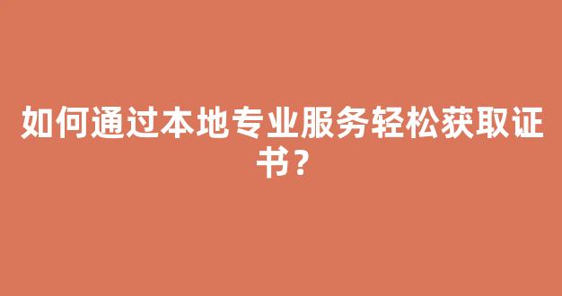 通过以上步骤,您可以通过本地专业服务轻松获取所需证书,为自己的职业发展打下坚实的基础。